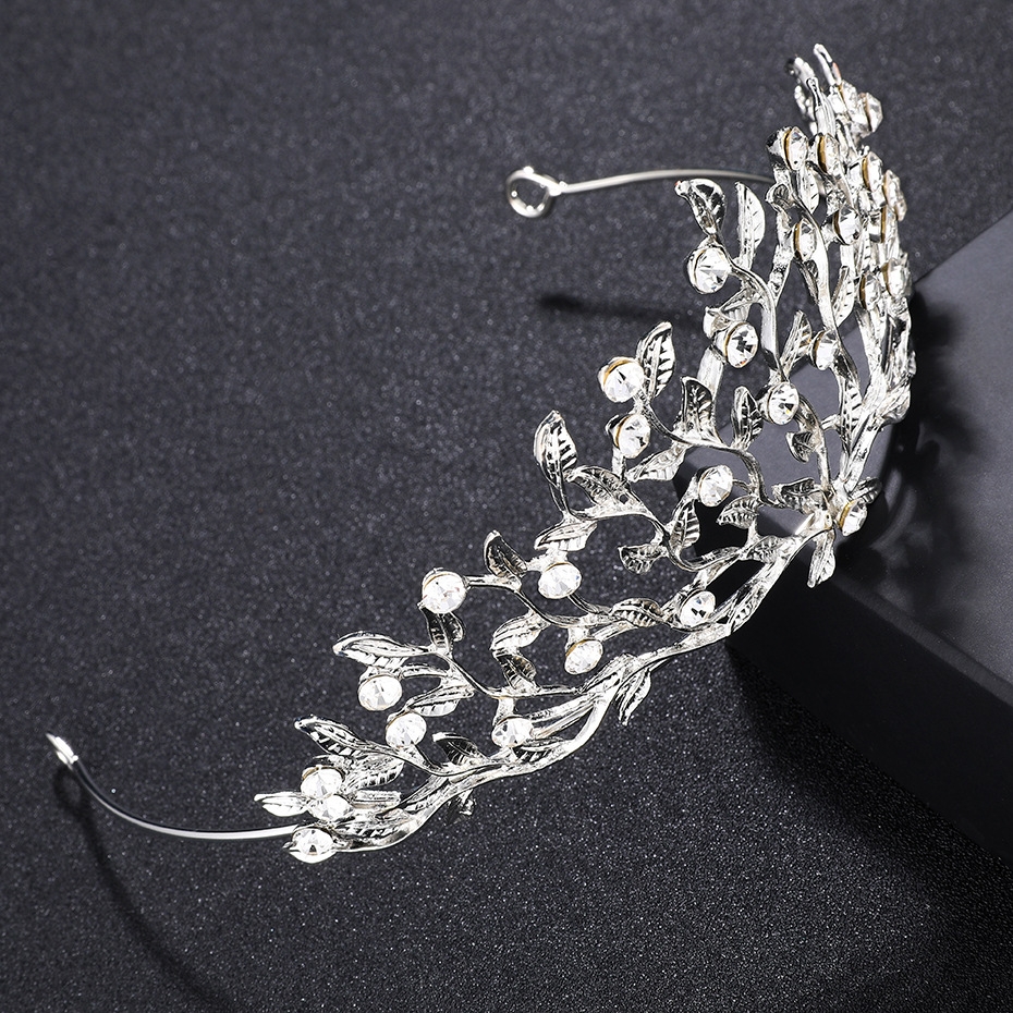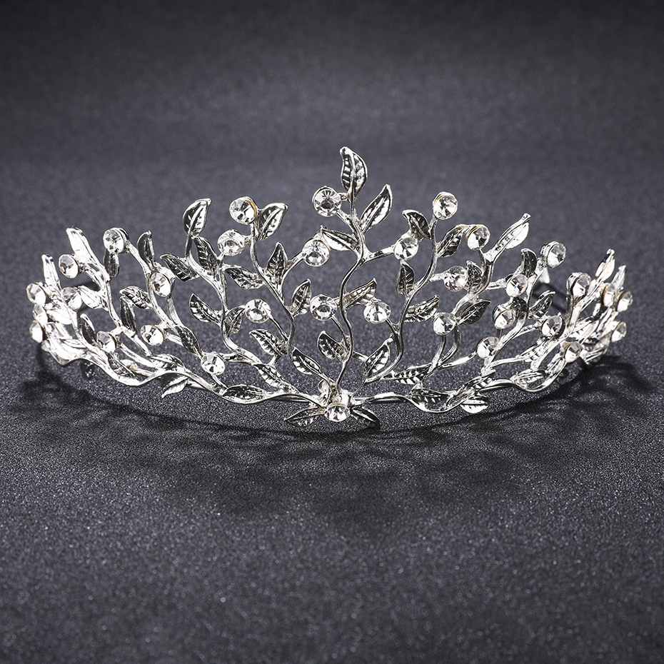 Hot - selling alloy crown leaf totem water diamond bride crown European wedding headdress wholesale